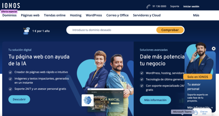 In other countries the use “Ionos, webs, hosting, domains… You own this!